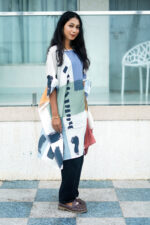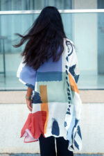 Bring contemporary chic to your wardrobe with this Abstract Geometric Print Kaftan. Crafted from smooth Crepe fabric, it offers a lightweight, flowy silhouette with bold patterns in blue, green, and earthy tones.