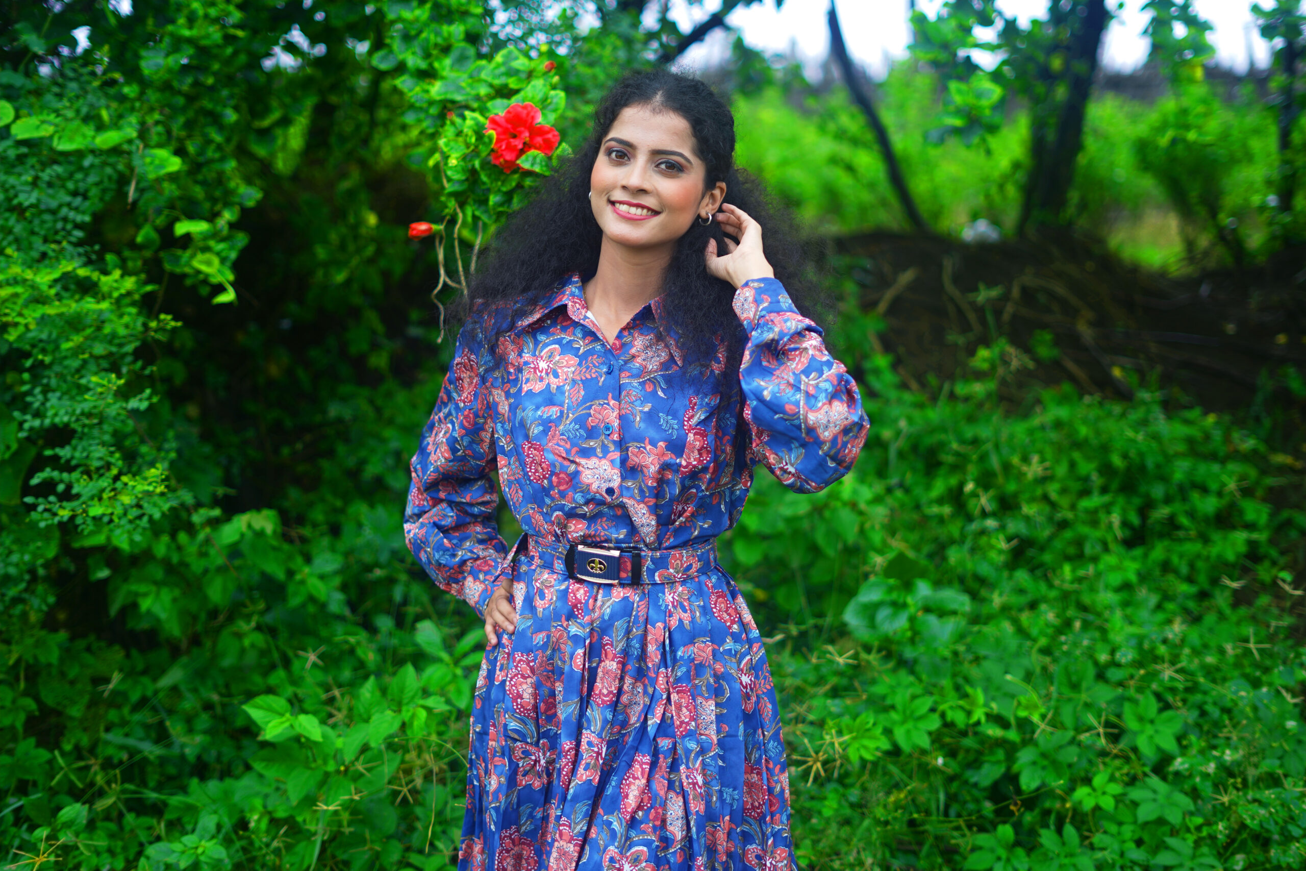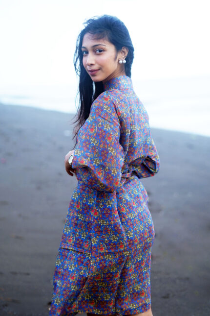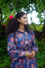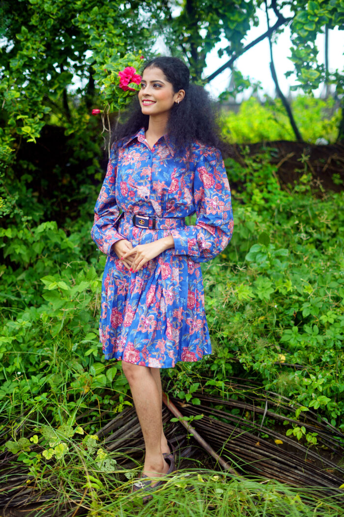 The Blue Floral Collared Midi Dress is a versatile blend of elegance and comfort, available in both muslin and super silk blend fabrics. Its classic collared design paired with a charming blue floral print brings together sophistication and freshness in one timeless piece.