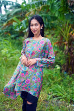 The Floral Imported Silk Kaftan Top is crafted from premium imported silk, offering a soft, smooth, and luxurious feel against the skin. Its vibrant floral print and relaxed kaftan silhouette make it ideal for both luxury resort wear and chic casual styling.