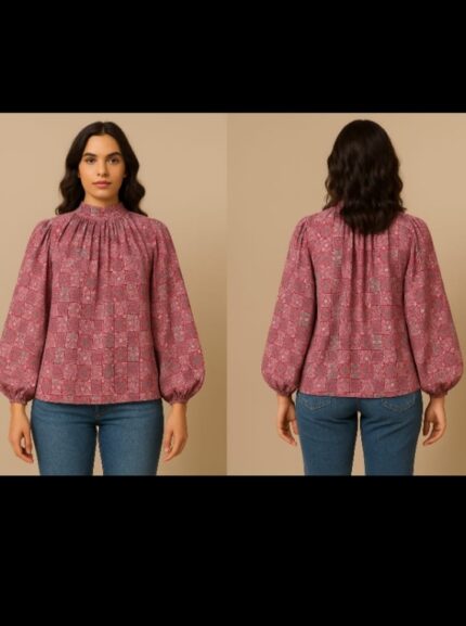 Pink Chinon Digital Print Balloon Sleeve Blouse