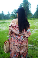 Luxury Peach Floral Smocked Midi Dress with Jacket