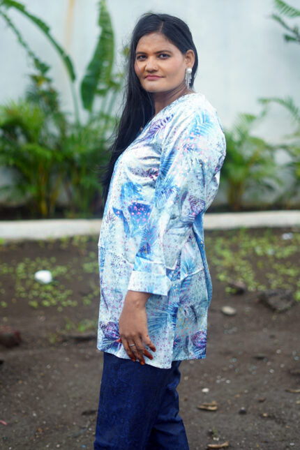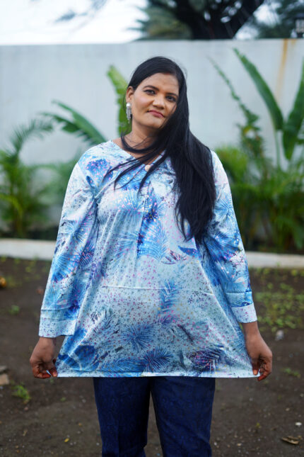 Blue Paradise Imported Silk Top – Luxe Casual & Party Wear