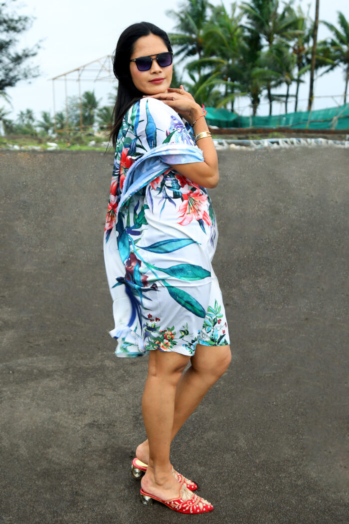 Bring a touch of holiday glam to your wardrobe with this tropical floral kaftan dress crafted in lightweight crepe fabric. Its relaxed silhouette ensures comfort, while the bold multi-color floral print makes it perfect for resort wear, brunches, and casual evening outings.