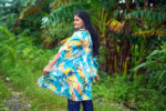 Multi-colored tropical floral and abstract print (yellow, blue, white, green) – bright and refreshing